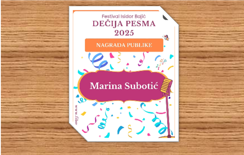 Марина Суботић, ученица II2 одељења, учествовала је на Фествалу "Исидор Бајић", Дечија песма 2025. Освојила је Награду публике са невероватних